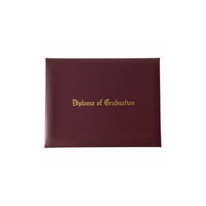 Present your diploma with a classic book type cover designed for a clean, professional look. This cover opens flat like a book, making it ideal for ceremonies, presentations, and long-term storage. The leather-textured exterior is finished with elegant gold foil “Diploma of Graduation” lettering, giving it a timeless and formal appearance.